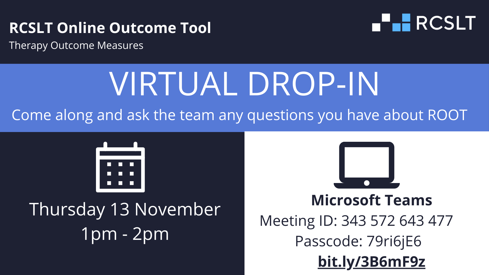 We hold monthly virtual drop-in sessions where you can ask the RCSLT team questions and link in with other users. The next drop-in will be held on Thursday 13 November 1-2pm.