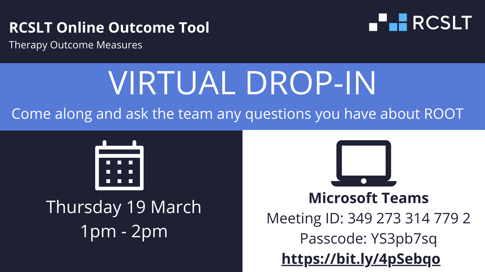 We hold monthly virtual drop-in sessions where you can ask the RCSLT team questions and link in with other users. The next drop-in will be held on Thursday 19 March 1-2pm.